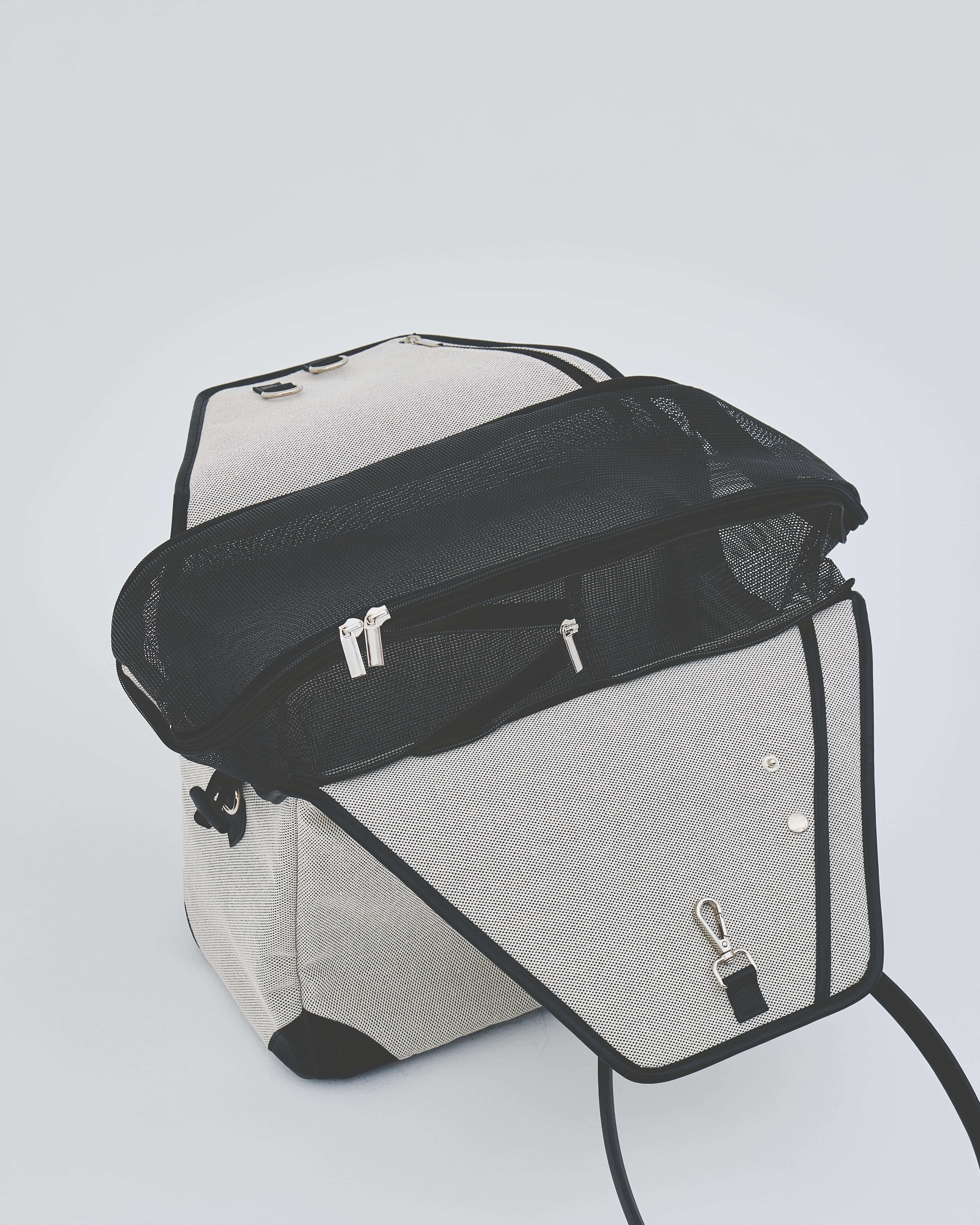 通気性の高いメッシュ蓋を採用し、蓋を閉じれば電車や新幹線などでも安心。高さも確保しているため、ペットが快適に過ごせます。